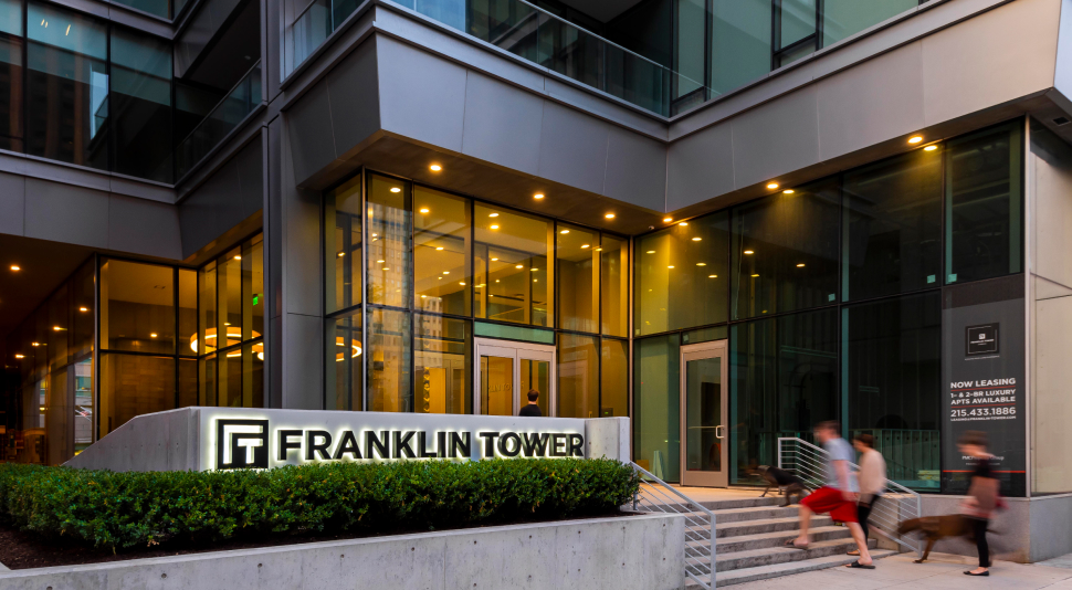 Once the headquarters of GlaxoSmithKline, Franklin Tower Residences was completely renovated inside and out in 2015, prompting The Philadelphia Inquirer’s Inga Saffron to call it one of “two new Philadelphia apartment buildings civilizing the Vine Street Expressway.” In addition to redefining the city’s skyline, Franklin Tower offers exceptional walkable dining options and close proximity to Center City's business district — featuring the Comcast Technology Center and Four Seasons Hotel — universities, public transportation, parks, and pet-friendly spaces.